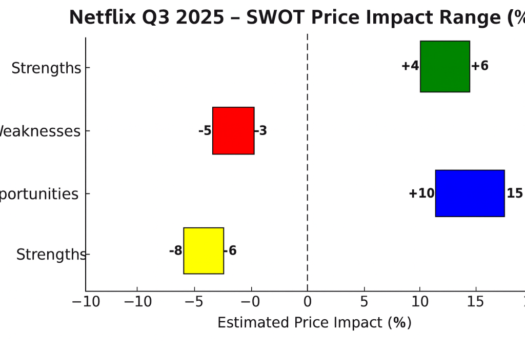 SWOT Price Impact Chart for Netflix Q3 2025 showing estimated price impact ranges for each SWOT factor.